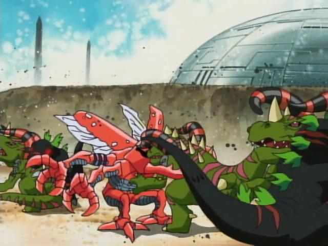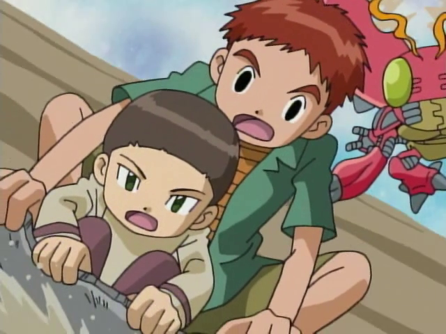 Déterminés à lutter contre le Digimon Kaiser, les Enfants Élus se sont élancés une nouvelle fois au Digital World en se séparant en petits groupes afin d’inspecter plus de territoires contrôlés. Daisuke, Taichi et Hikari sont partis du côté de l’océan, Yamato, Takeru et Miyako dans la forêt tandis que Kôshirô et Iori se sont dirigés vers le désert. Ce dernier groupe est en train d’escalader une falaise quand le cadet dérape et manque de tomber mais l’aîné le rattrape in extremis. Tentomon annonce peu après avoir aperçu quelque chose au sommet. Les garçons se dépêchent de le rejoindre et aperçoivent en contrebas de multiples Dark Towers ainsi que de nombreux digimon, tous portant un Evil Ring. Au loin apparait une silhouette imposante particulière d’où émergent d’autres digimon. Ils se mettent alors à se battre entre eux, purement animés par des instincts animaliers. Iori en est horrifié et Armadimon remarque par où ils sont arrivés. Kôshirô suppose que le bâtiment pourrait être la base de leur ennemi. Il aperçoit soudain que les digimon les ont vu et panique. Par réflexe, le garçon saisit son digivice mais se rend bien compte que Tentomon ne pourra jamais évoluer.