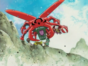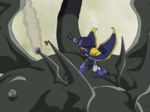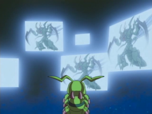 Brusquement, Kuwagamon bondit vers eux, menaçant. Armadimon armor évolue vite en Digimon pour les protéger tandis que Kôshirô et Iri se laissent glisser le long de la pente sur un morceau de ferraille. Kôshirô espère qu’ils ont pris assez recul quand le Digimon Kaiser apparait au-dessus, monté sur Devidramon. Il leur demande ce qu’ils font ici mais Iori réplique n’avoir aucune l’intention de lui répondre. Tentomon essaie d’évoluer mais le Digimon Kaiser bloque son évolution en se moquant ensuite d’eux d’oublier son pouvoir. Les garçons basvulent à ce moment dans un trou et font une longue chute avant de rejoindre Digimon qui les ramène à la surface dans une zone plus sécurité. Là, Kôshirô réussit à faire évoluer son partenaire en Kabuterimon qui les emmène loin du danger. A distance, le Digimon Kaiser les observe, fixant attentivement le digimon volant.