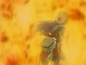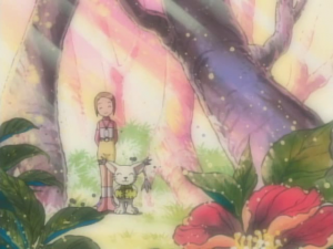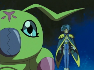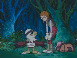 Vers la fin de l’après-midi, Hawkmon se réveille et Hikari se lève pour le laisser seul avec Miyako puis demande à Tailmon qui revient avec les herbe de rester à l’écart. Miyako commence par s’excuser puis expliquer que quand elle a pris conscience qu’ils allaient affronter leur ennemi, elle est devenue très nerveuse au point de se sentir confuse et a fini par faire une bêtise qui a causé la blessure de son propre partenaire. Hawkmon rit doucement. Miyako songe ne pas pouvoir s’arrêter quand elle commence quelque chose puis s’excuse d’être une mauvaise partenaire. Hawkmon assure que tout av bien et que lui l’aime excatement comme elle est. Miyako le remercie puis l’enlace fort, oubliant un instant sa blessure.