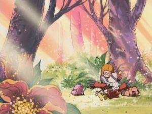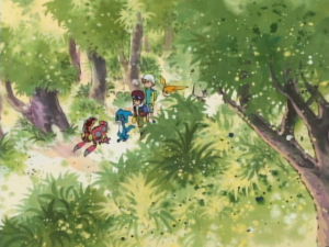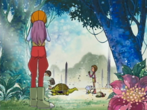 Quand les autres s’éloignent, Hikari s’excuse auprès de Miyako d’avoir pu l’offenser hier en parlant de détermination. Miyako assure que ce n’est pas faute et Hikari lui sourit. Tailmon décide ensuite de s’éloigner pour chercher une herbe qui trouverait dans cette forêt et soignerait le poison. Pendant ce temps, les garçons explorent la forêt et découvrent de nombreuses Dark Towers. Iori s’arrête un instant, croyant apercevoir une ombre. Au même moment, dans la base du Digimon Kaiser, Wormon observe différents digimon sur les écrans de contrôle et sélectionne d’eux certains éléments.Le Digimon kaiser apparait soudain et anonce avoir découvert la localisation du tourbillon des ténèbres. Il parait très impatient tandis que Wormon se montre inquiet.
