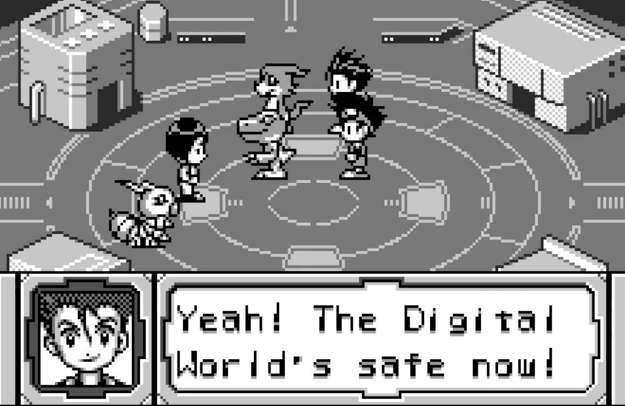 Gennai : « Oh ! Bien travaillé, Enfant Élu, tu es rentré sain et sauf ! Les forces du mal ont diminué. À présent, repose-toi. Le repos est également un travail important. »