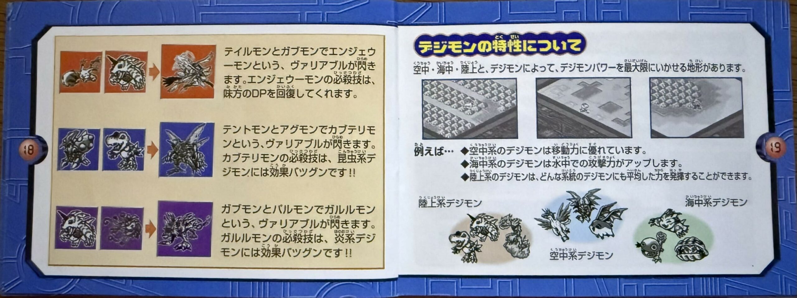 Il s’agit d’un tactical RPG de tout ce qu’il y a de plus simple. On dénombre 185 Digimon présents dans le jeu depuis le Digimon Analyser, dont 113 durant le cours du jeu. Pour plus de facilité, nous vous invitons à consulter ce let’s play.