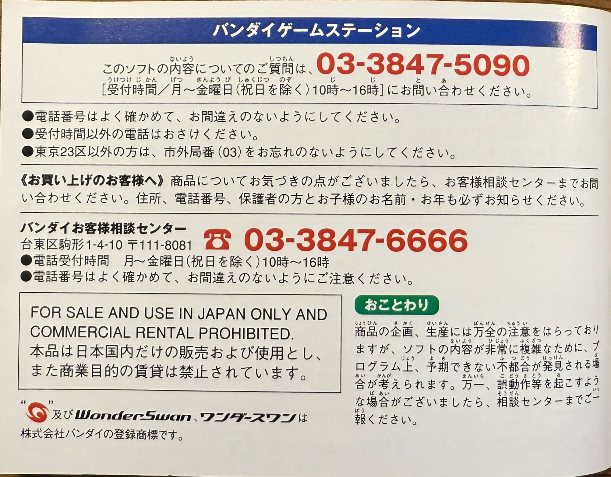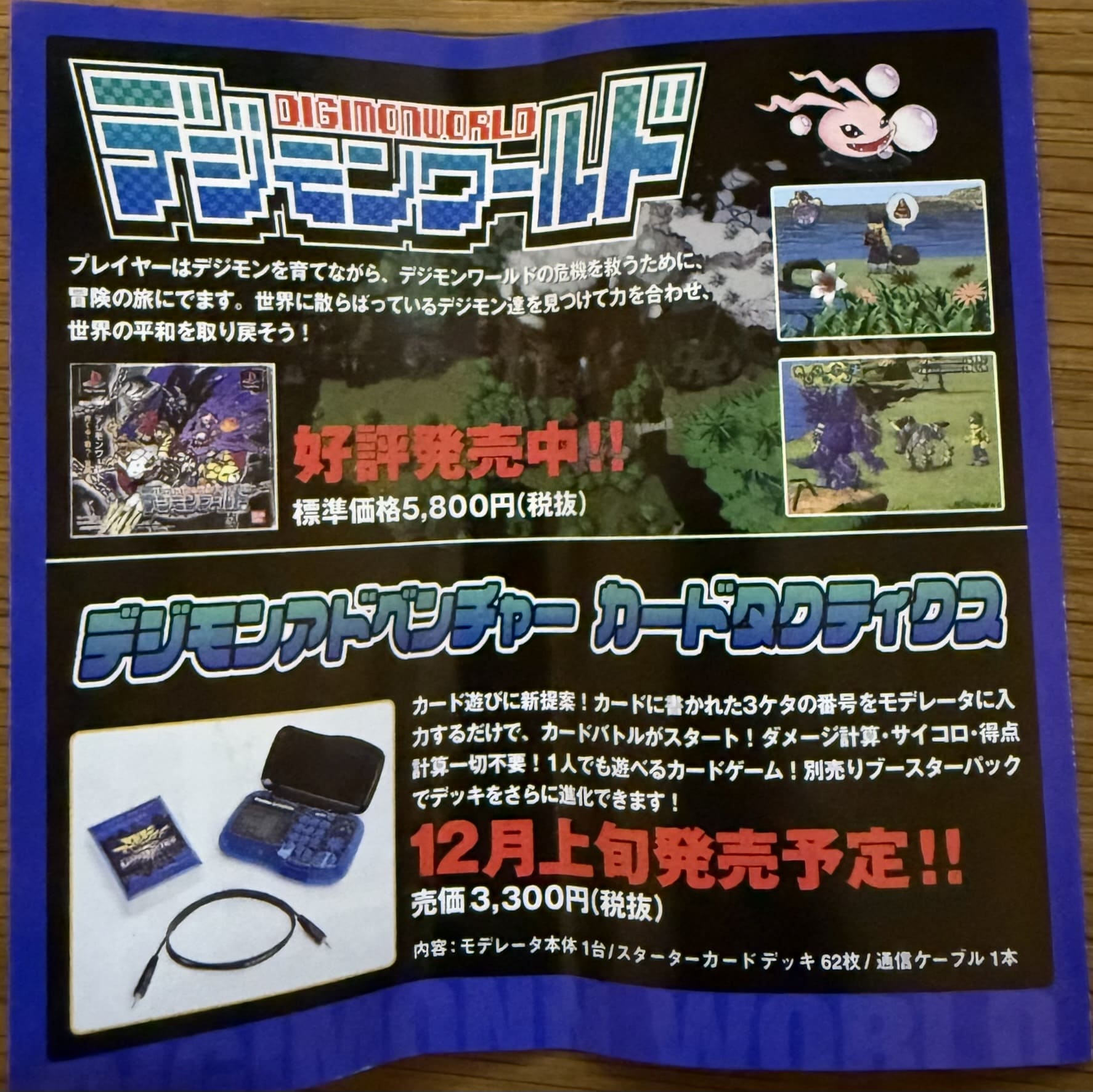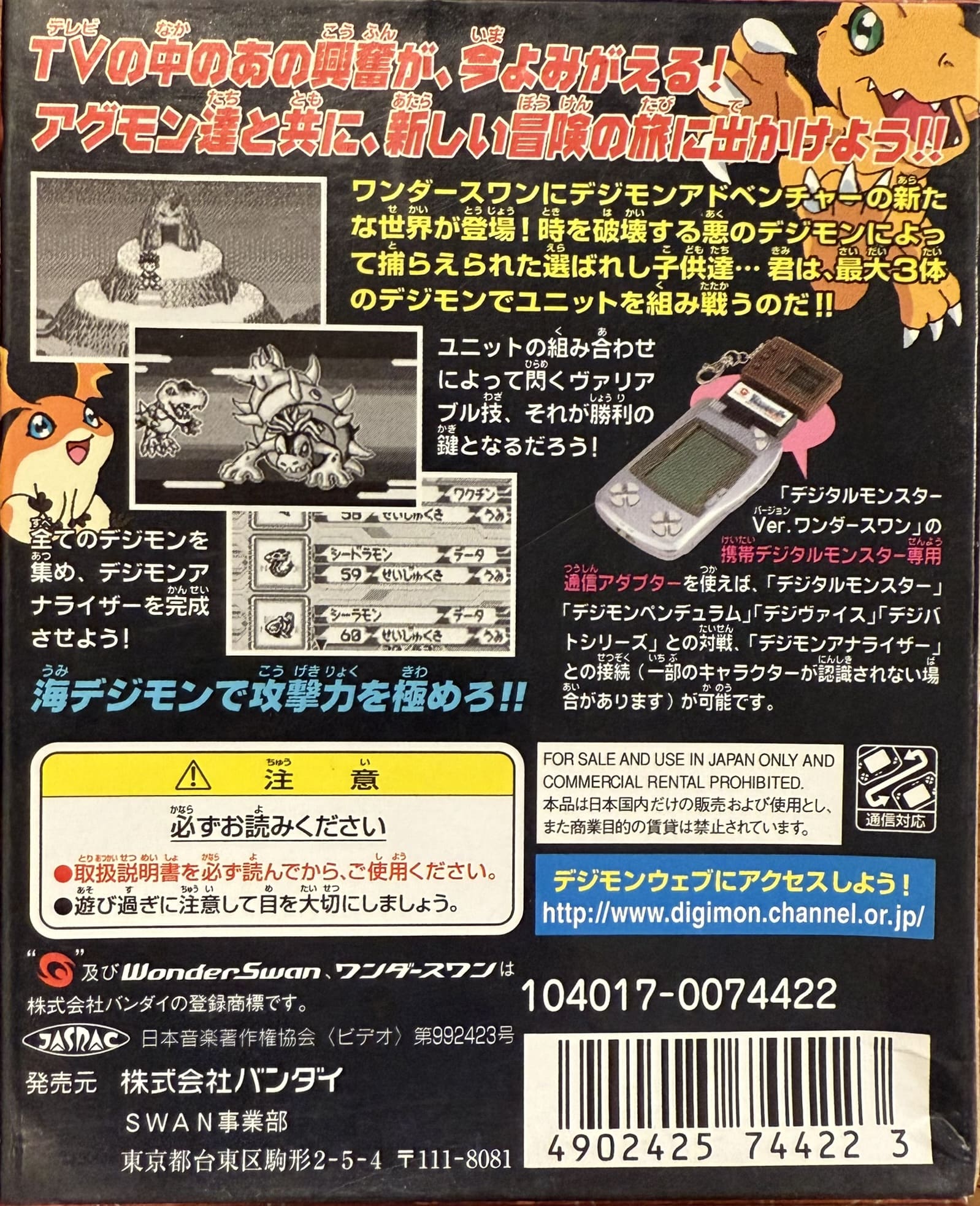 Ce jeu relate la première aventure du fameux Ryô Akiyama, mais aussi la naissance de Millenniummon et reprend tous les méchants de Digimon Adventure qu’il faut vaincre un à un. Les enfants élus apparaissent brièvement également. C’est un Tactical RPG basique, où le joueur peut recruter de nombreux Digimon pour former une équipe de combat. À la manière de Pokemon, les deux versions du jeu sont sensiblement les mêmes, sinon quelques Digimon exclusifs.