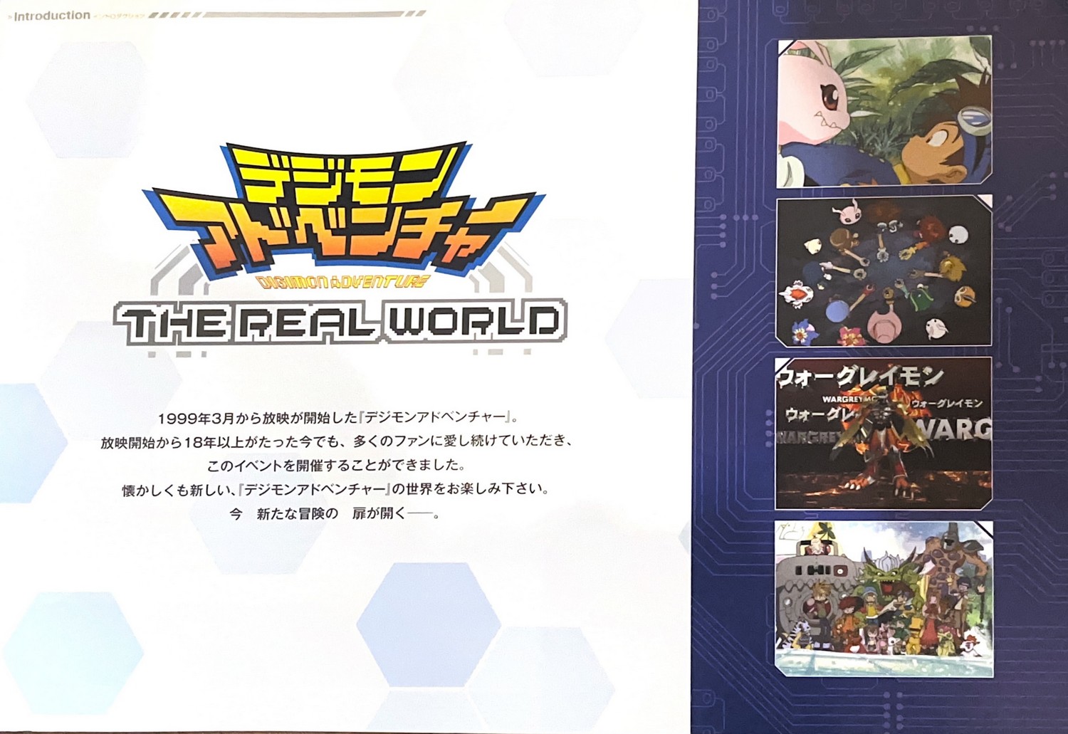 The Real World est une exposition présentée en 2017 à Harajuku, autour de Digimon Adventure, destinées aux fans de la première heure. Comme souvenir, un pamphlet était vendu? Celui-ci contient notamment un entretien entre Hiromi Seki et Hiroyuki Kakudô, et également Kenji Watanabe et Katsuyoshi Nakatsuru.