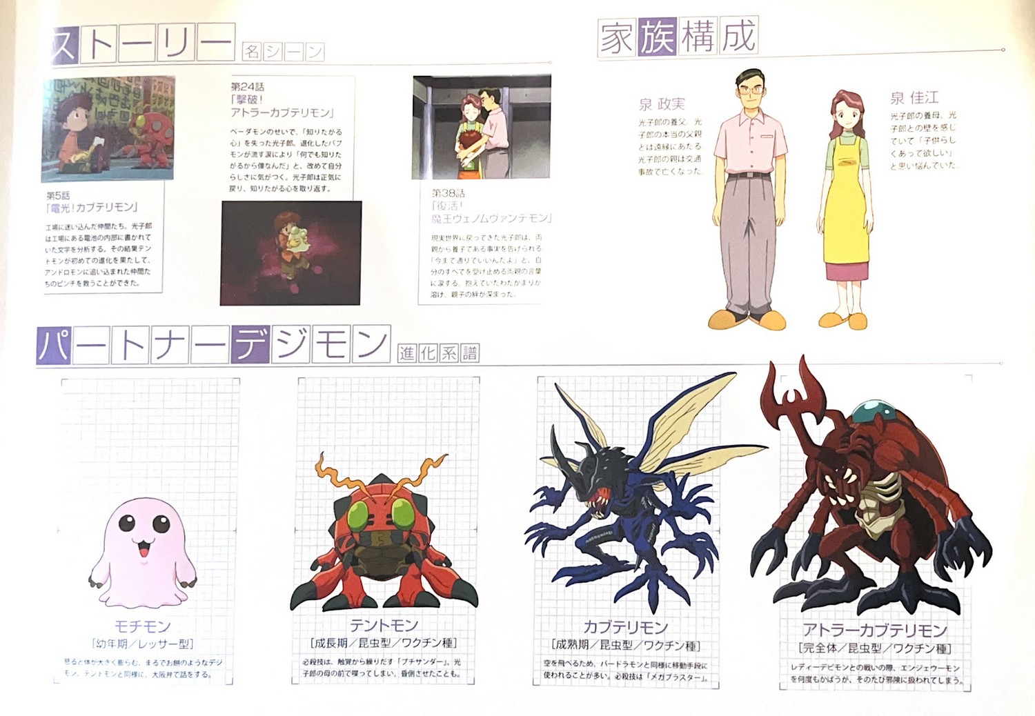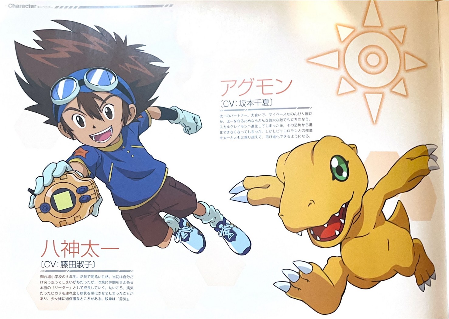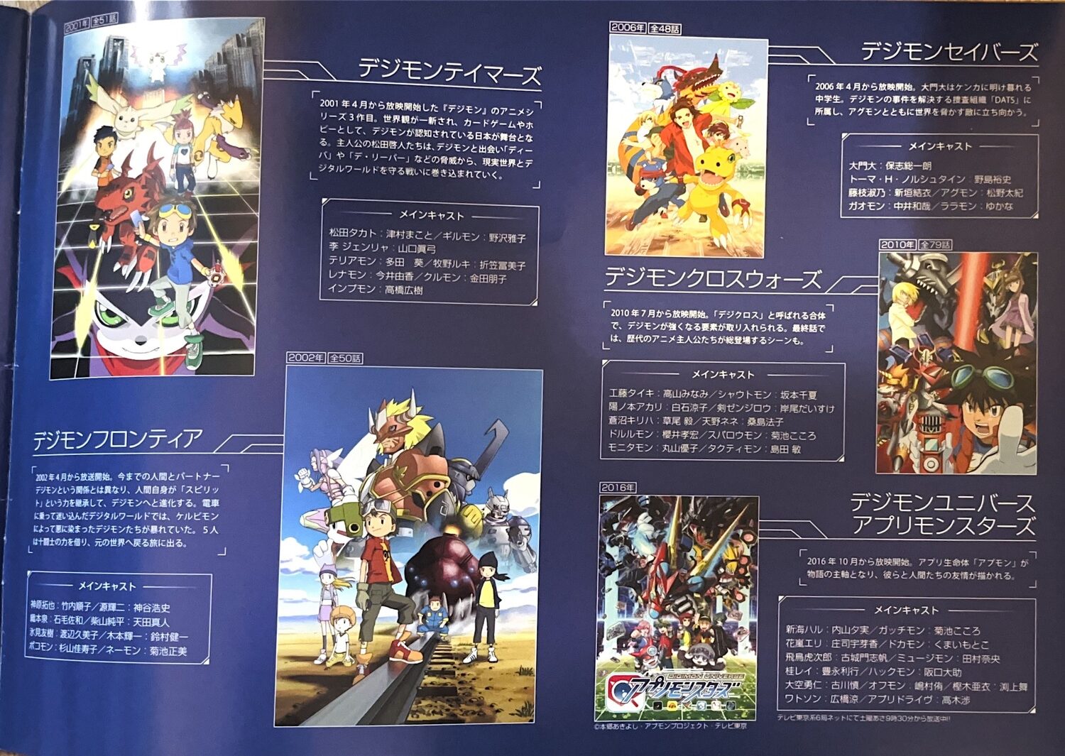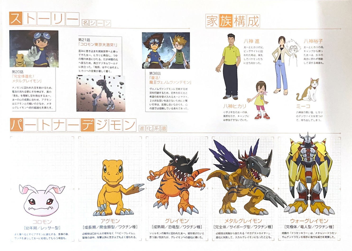 Le 1er pamphlet d’une série de 6 films. Retrouvant nos héros après plusieurs années, nous avons la classique présentation des protagonistes avec une rapide description de leur nouveau parcours de vie. Nous avons ensuite une interview intéressante entre le seiyuu de Taichi (Natsuki Hanae) et celui de Agumon (Chika SAKAMOTO) sur les conditions de leur casting et la manières dont ils ont interprété leur personnage. Ensuite nous avons également une rapide interview du réalisateur Keitarō Motonaga, et celle de Koji Wada pour son retour sur l’opening Butterfly dans cette nouvelle saga. Le pamphlet suit alors avec des illustrations et se finie sur la page goodies pour sélectionner ses futurs achats.