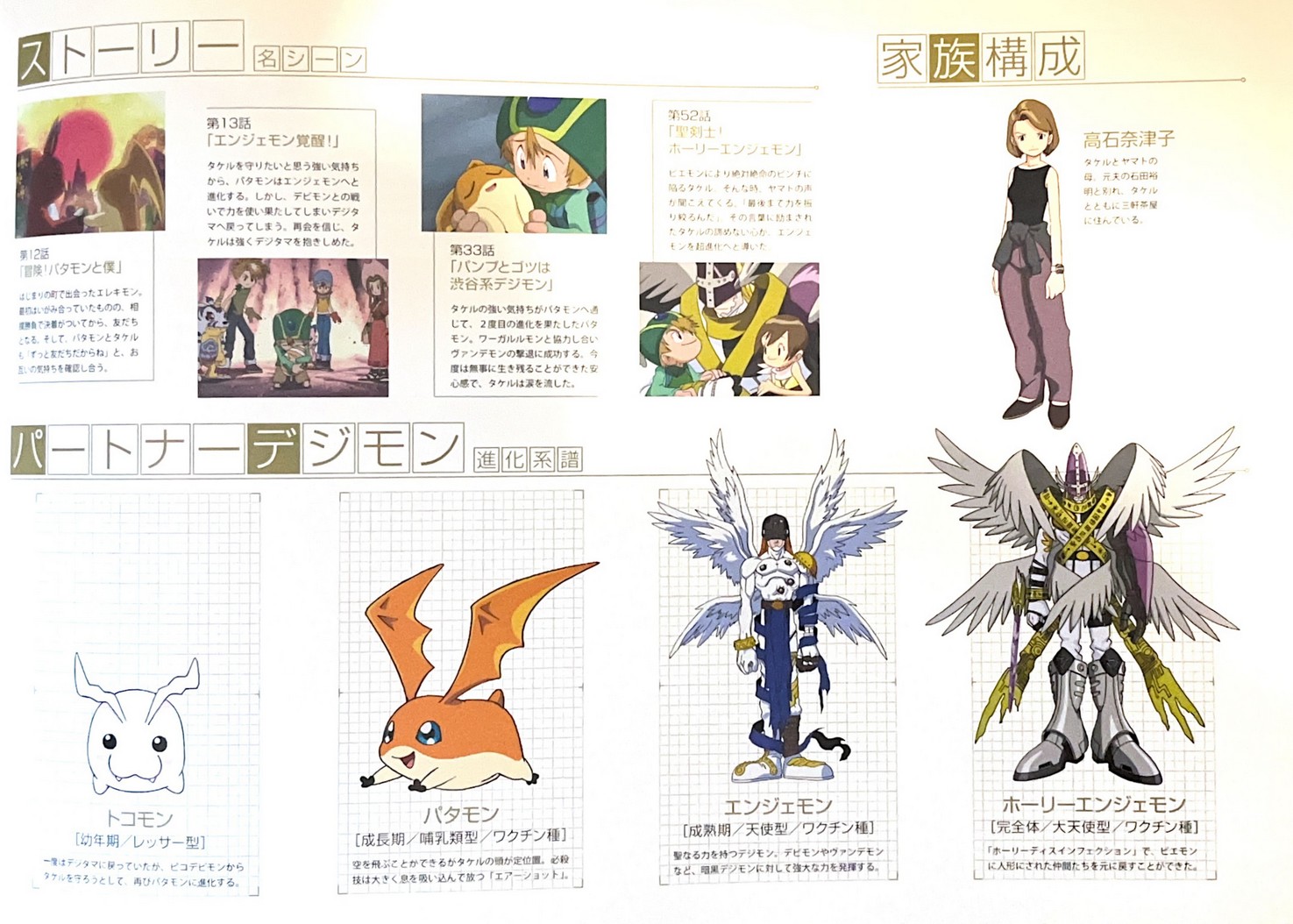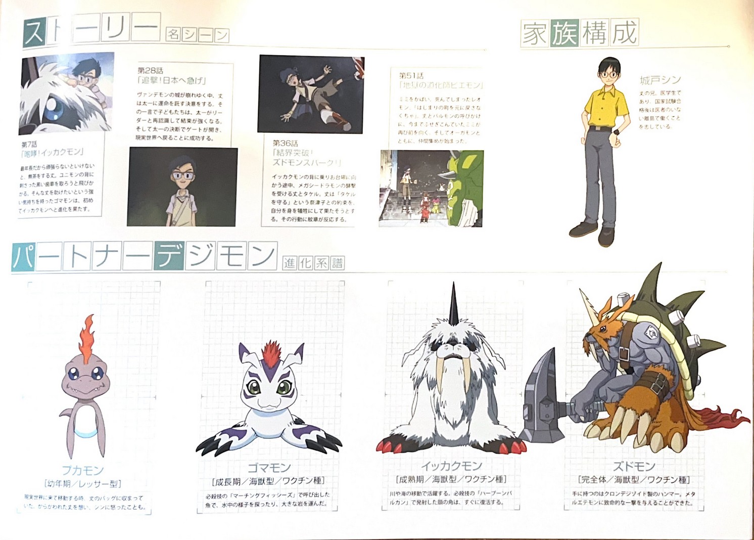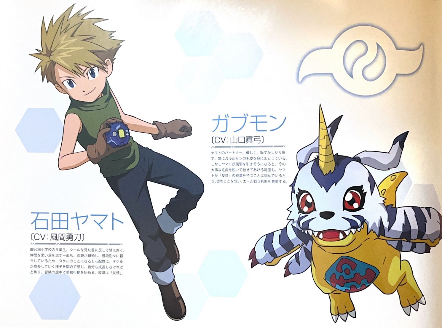 S’agissant du film concluant la saga tri, ce pamphlet offre des messages par le cast de la série, humains et digimon. On y retrouve également une longue interview des seiyuu de Yamato et Gabumon ainsi que de l’illustrateur des digimon Kenji Watanabe.